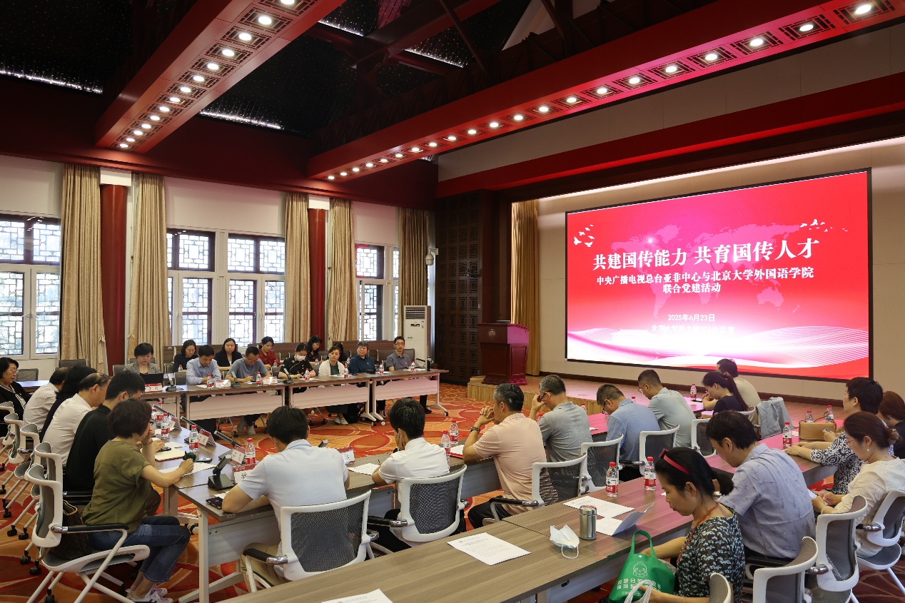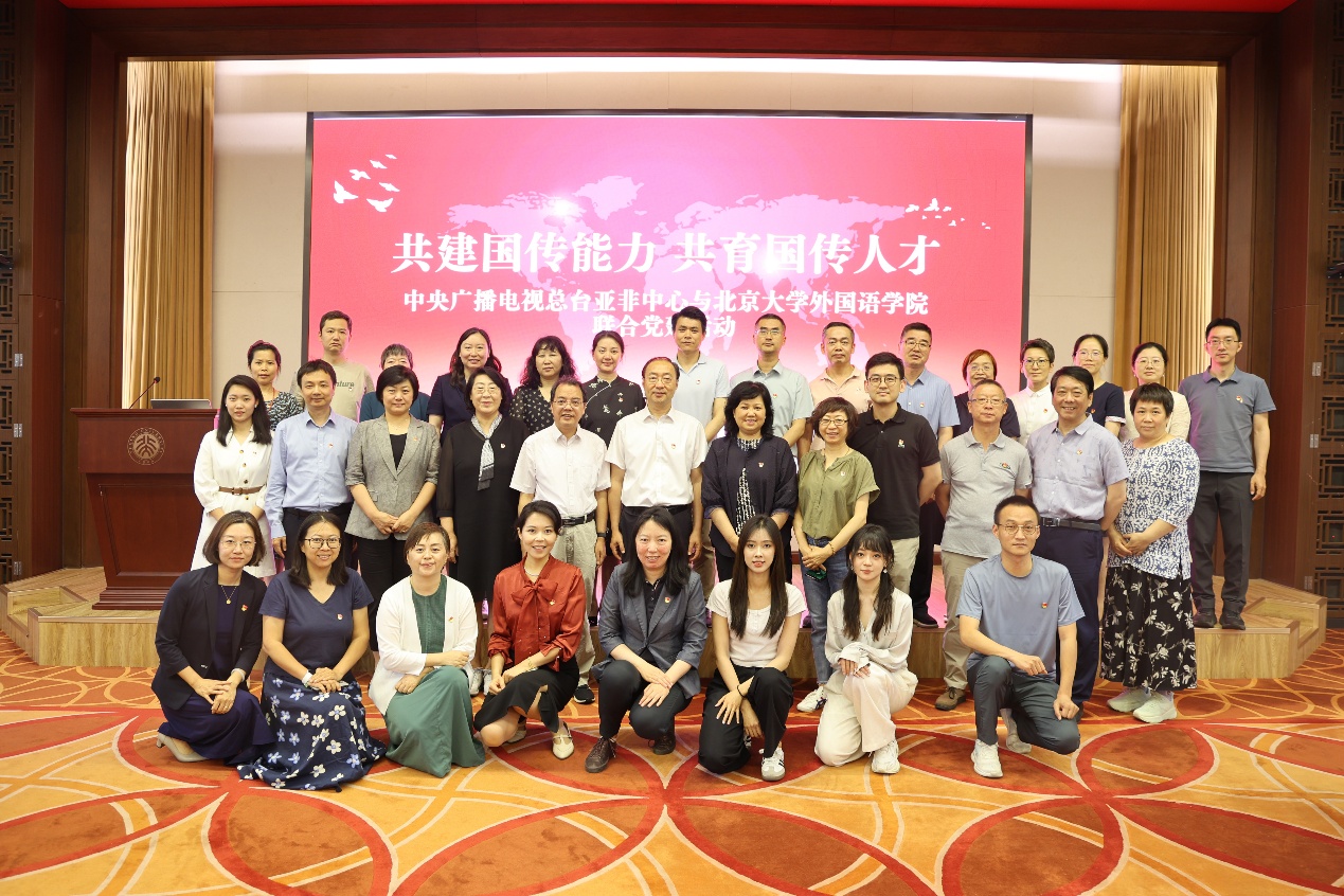 为贯彻落实二十届三中全会提出的“构建更有效力的国际传播体系”要求和习近平总书记关于建设教育强国的重要讲话精神,培养具备较强政治、人文素养和专业能力的国际传播人才,2025年6月23日上午,中央广播电视总台亚洲非洲地区语言节目中心(以下简称“总台亚非中心”)与博鱼体育(以下简称“北大外院”)在北京大学联合举办“共建国传能力,共育国传人才”党建活动,双方参观北大校史馆并瞻仰李大钊塑像,围绕国际传播能力建设、外语人才培养等议题展开深入交流,并宣布启动双方国际传播合作机制。总台亚非中心党委书记、主任安晓宇,亚非中心副召集人司楠,党委专职副书记郭翌,以及博鱼体育党委书记李淑静,院长陈明,副院长吴杰伟、王丹、王恒,党委副书记张冬梅、冯美娜等党政班子成员出席。30余名来自总台亚非中心各语种党支部及北大外院教工党支部的党员代表参加。