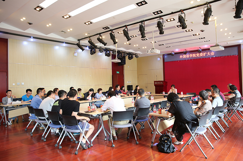 7月3日中午,外国语学院在学院新楼501会议室举行党委扩大会,总结本学期学院党委工作,表彰先进集体和个人。学院党委委员、全体党支部书记或支委参加会议。会议由学院党委书记李淑静主持。