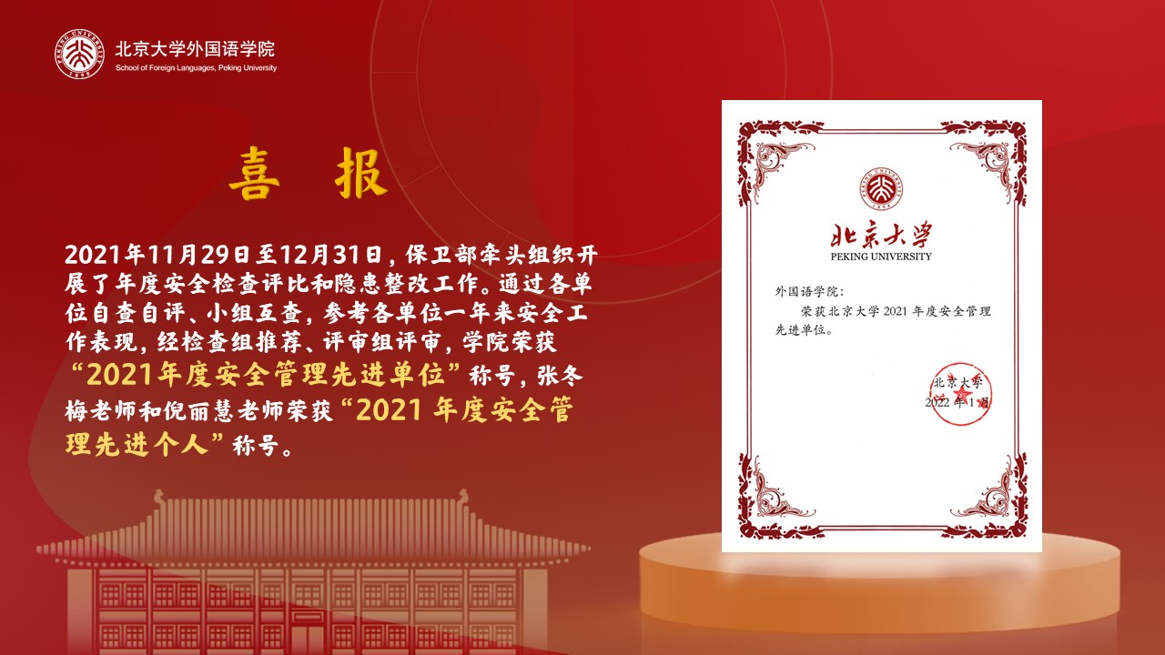 外国语学院荣获北京大学2021年度安全管理先进单位
