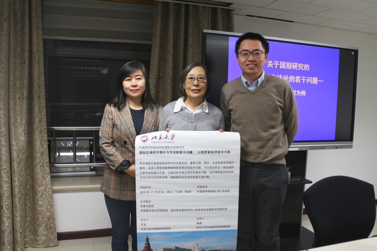 2019年11月20日下午,国务院发展研究中心欧亚社会发展研究所研究员田春生教授应邀来访我院,为同学们带来了一场题为“国别区域研究理论与方法的若干问题:以俄罗斯经济研究为例”的学术讲座。