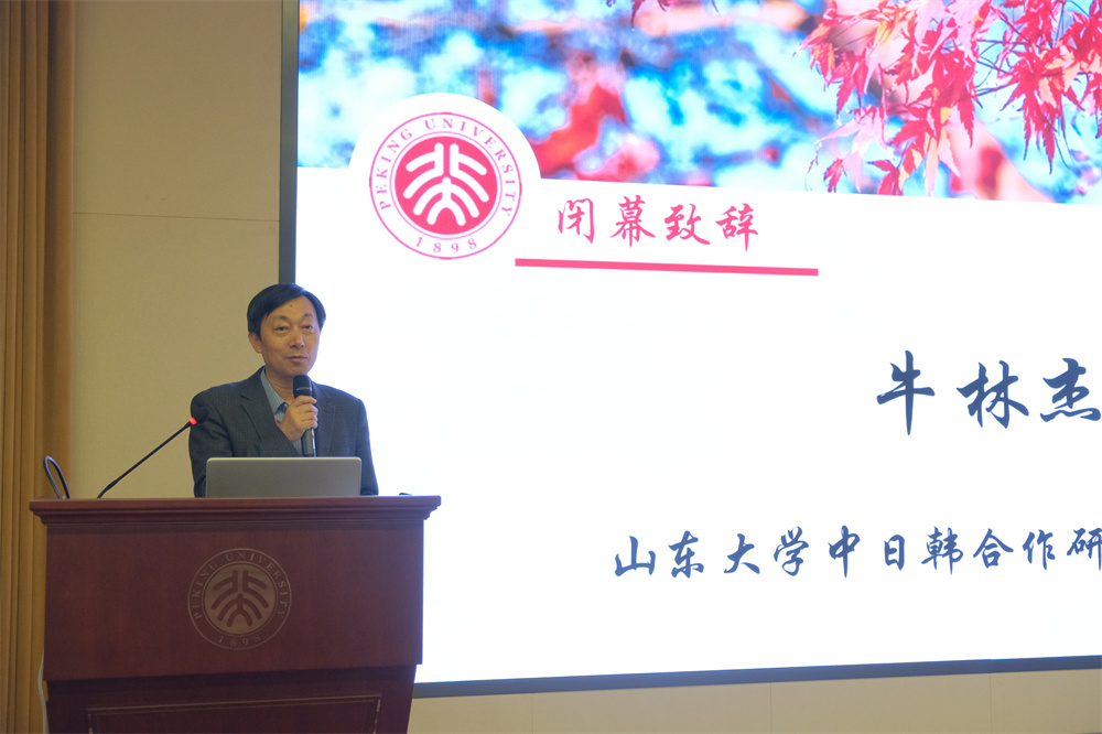 闭幕式由博鱼体育朝鲜(韩国)语言文化系副系主任丁一老师主持,北京外国语大学韩梅老师、上海外国语大学高陆洋老师分别对“文学、历史文化研究”“语言、教育研究”分论坛发言的核心内容进行了深入分析,并对讨论情况进行了精辟点评。最后,山东大学中日韩合作研究中心主任牛林杰教授为本次论坛致闭幕词。牛林杰教授总结了漆永祥老师、李花子老师和王丹老师所作主旨报告的重要价值与启发性,强调了学术成长、全方位研究、重视素养教育、创新性选题和关注现实问题等方面的重要性,并鼓励老师们在未来的论坛中大胆尝试新的研究视角和方法,并结合当前国家和社会的需求进行跨学科研究。最后,牛林杰教授再次向所有与会学者表示衷心感谢,向博鱼体育朝鲜(韩国)语言文化系师生致以诚挚谢意,也表达了对论坛未来发展的展望与期待。