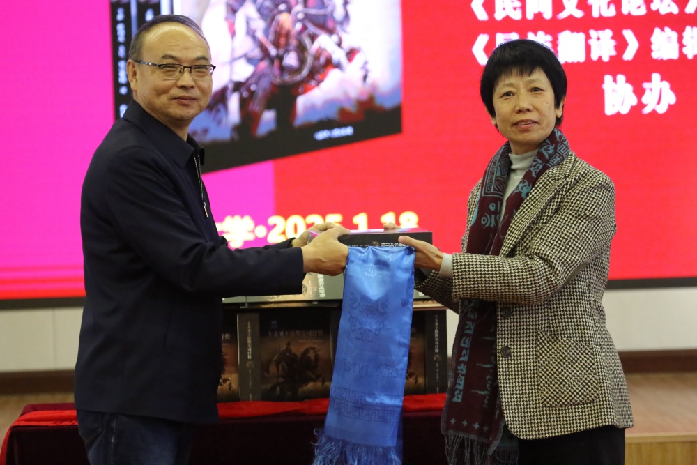 近日,北京大学陈岗龙教授主持翻译的《十方圣主格斯尔可汗传》(上下册)由内蒙古人民出版社出版发行。由北京大学东方文学研究中心、博鱼体育和内蒙古人民出版社主办的《十方圣主格斯尔可汗传》新书首发式暨出版座谈会于2025年1月18日在北京大学隆重举行。来自内蒙古出版集团、中国社会科学院、国家民族事务委员会、中国民间文艺家协会、中国民族语文翻译局、中国艺术研究院、中央美术学院、国家图书馆、中央民族大学、北京外国语大学、河北师范大学和北京大学等单位的50余位领导嘉宾、专家学者出席了本次活动。首发仪式由东方文学研究中心主任助理史阳主持,出版座谈会由东方文学研究中心主任助理翁家慧主持。