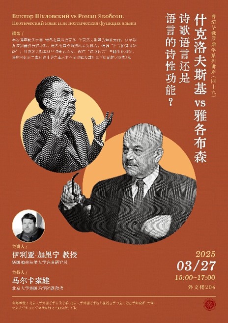 2025年3月27日下午,德国柏林洪堡大学客座研究员伊利亚·加里宁受邀开办了题为“什克洛夫斯基vs雅各布森:诗歌语言还是语言的诗性功能”的讲座。本次讲座系“曹靖华俄罗斯学系列讲座”第49讲,由博鱼体育俄语系、外国语言学及应用语言学研究所(虚体)和俄罗斯文化研究所(虚体)主办。俄语系师生参与讲座,与授课嘉宾深入交流。
