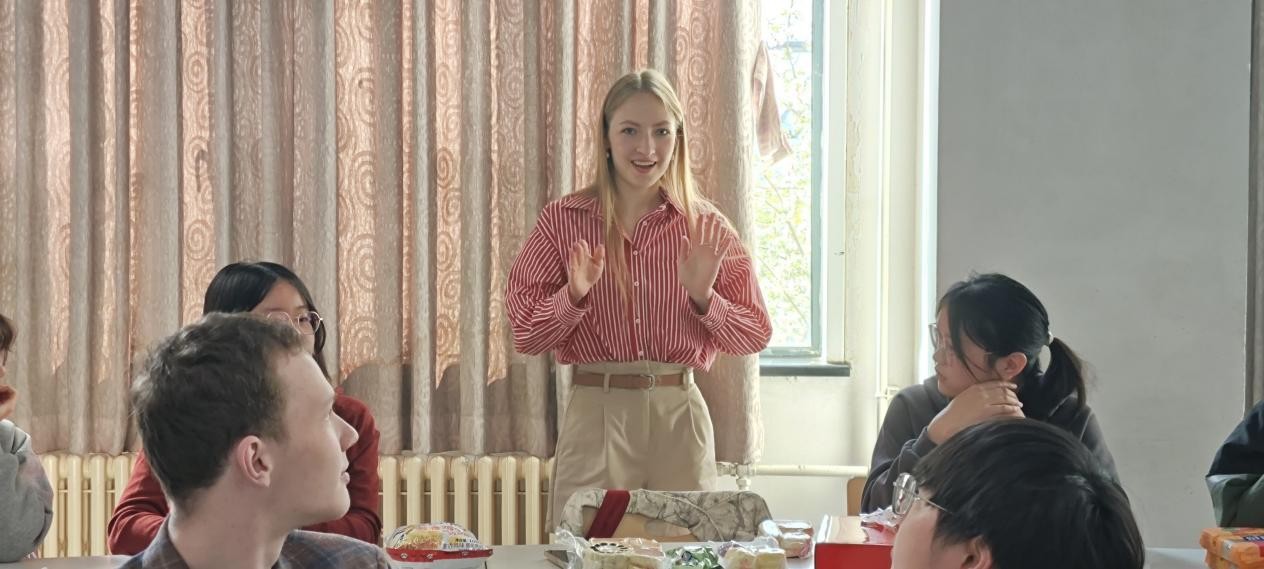 在语言交流环节,中、俄同学分享了各自在语言学习中的心得体会,并就学习中的疑难问题展开了热烈讨论。此外,活动还特别安排了美食体验环节,北大俄语系同学特别为莫大孔院同学准备了特色糕点与饮品,大家在品尝美食中增进了对彼此美食文化的理解。