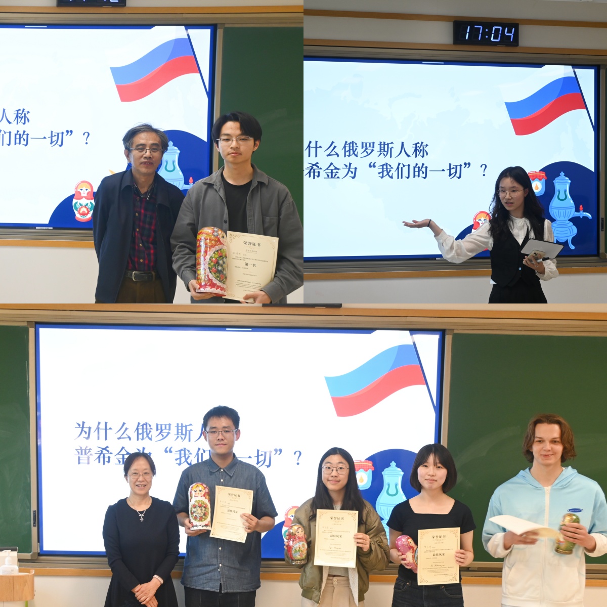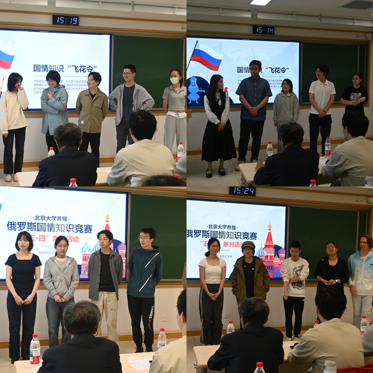 2025年4月24日,博鱼体育俄罗斯语言文学系(以下简称“俄语系”)于北京大学第一教学楼302教室举行“五·四系列活动——首届俄罗斯国情知识竞赛”(以下简称“竞赛”)。俄语系教师出席并担任竞赛评委。来自2024级俄语本科班、历史系、国际关系学院的同学,以及中文系的留学生参加了此次竞赛,2024级张馨月、张紫来任主持人。竞赛在一片热烈的掌声中正式拉开序幕。