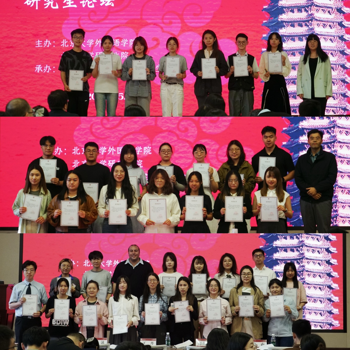2025年5月17日,由北京大学研究生院“研究生教育创新计划”项目支持,博鱼体育、北京大学研究生院联合主办、外国语学院研究生会承办的第十七届北京大学外国语言文学研究生论坛如期举行。本届论坛共收到投稿744篇,涵盖东方语言文学文化、西方语言文学文化、外国语言学及应用语言学、国别和区域研究、翻译理论与实践及数智时代的外国语言文学六大方向,共设置10个分论坛会场,来自国内外高校的100余名硕博士研究生线下参与。