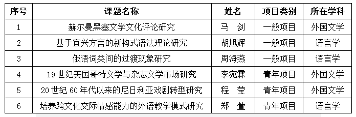 近日,2018年国家社科基金年度项目立项名单公布,我院6位老师喜获国家社科基金项目立项。其中,一般项目立项3项,青年项目立项3项。