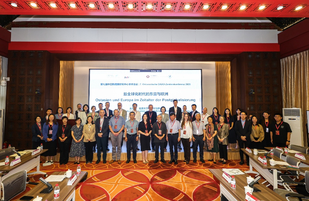 2025年9月5日至6日,由北京大学德国研究中心(ZDS)主办的“第七届中日韩德国研究中心学术会议”在民主楼208顺利召开。本次会议共有来自北京大学、韩国中央大学、日本东京大学、柏林洪堡大学、柏林自由大学等九所高校的20位报告人围绕“后全球化时代的东亚与欧洲”这一主题,从历史、政治、文学、哲学、经济、社会学等多学科视角,作了内容翔实、观点独到的主题报告。大会吸引来自北京大学、北京外国语大学、北京师范大学、对外经济贸易大学、北京第二外国语学院等高校近80名师生与会。